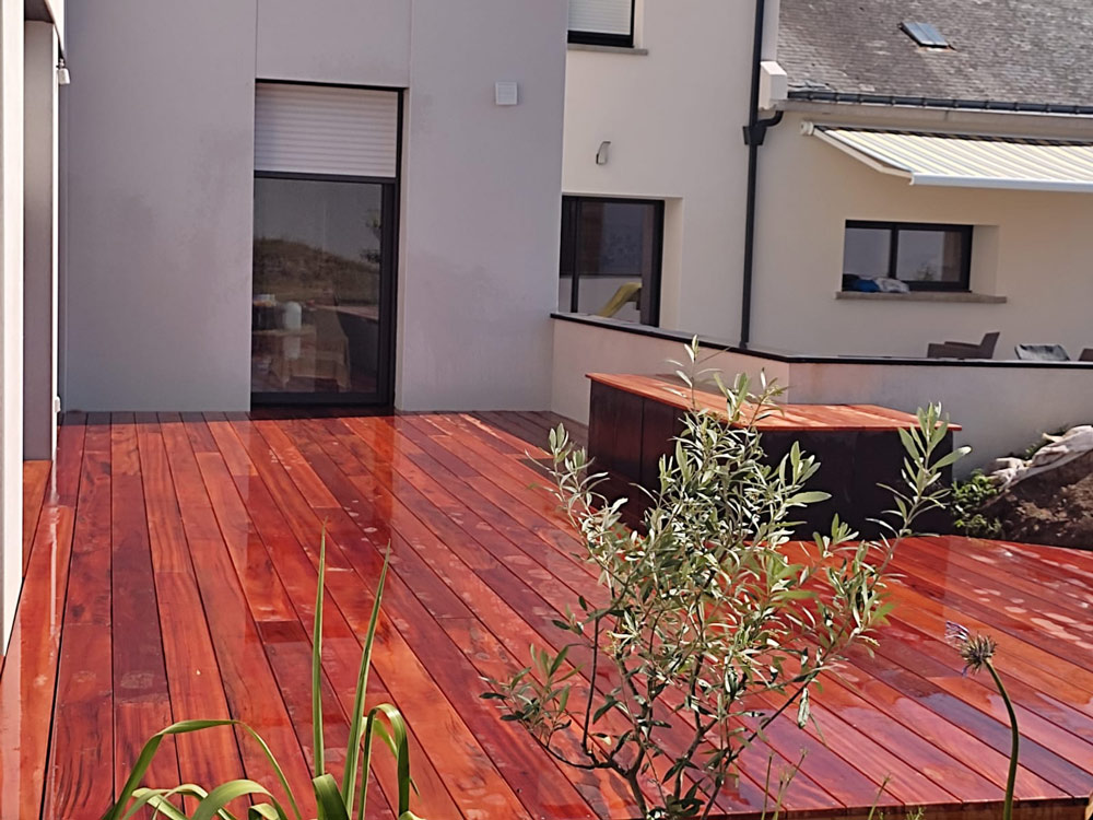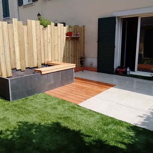 Terrasse (bois, pierre naturelle, grès cérame)