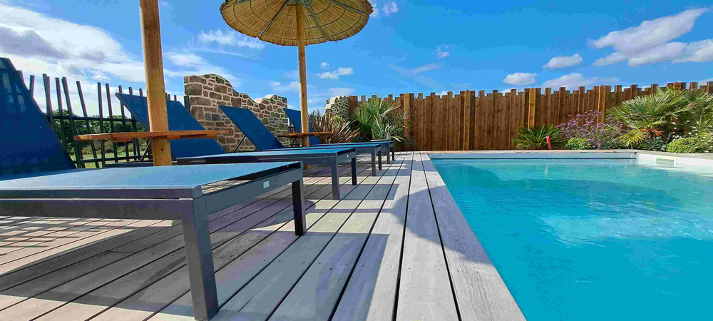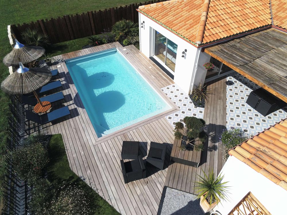Abords piscine : Terrasse bois et autres matériaux